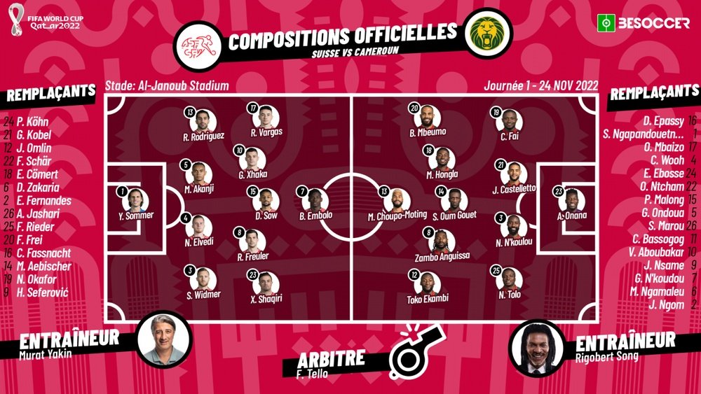 Web Suivez le match Suisse - Cameroun la 1re journée de Coupe du Monde 2022 Qatar 2411 en direct live. Se donner une chance de sortir de ce groupe G aux côtés du grandissime favori brésilien. La Suisse tombeuse de léquipe de France à lEuro entame son parcours face au Cameroun vainqueur de lAlgérie en barrage.